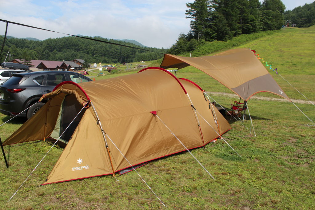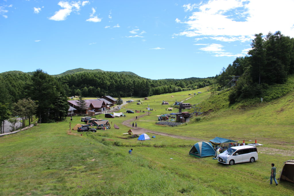 今回、お世話になったのは北軽井沢のEarth-Smile Villageというキャンプ場になります。冬はスキー場で、夏はゲレンデがフリーサイトとして自由に使えます。ゲレンデに車の乗り入れも可能で、テント横付けにできるのは、キャンプ初心者で荷物も多いファミリーキャンプユーザーには結構重要なポイントではないでしょうか?