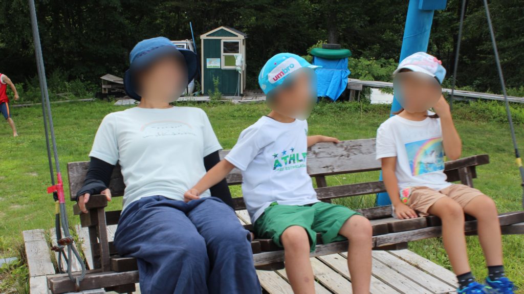 設営の間、サイトの後ろ側にアスレチックが設置されており、子供たちは、ひたすら遊び倒していました。目の届く範囲で、自分たちで遊んでいてもらえると、ゆっくり設営を進めることができ、非常に助かります。