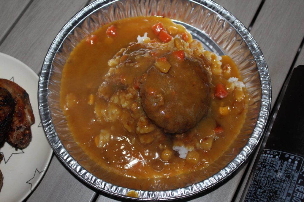 カセットコンロと鍋のセットでお湯の大量確保が可能になったことから、レトルトの利用も可能になりました。カセットコンロに続き、レトルト食品も偉大。こんなに簡単にご飯が作れるなんて。そして、おいしい!!ただのレトルトのカレーとハンバーグ、パウチのご飯の組み合わせですが、壮絶おいしいです。外で食べるご飯のおいしさたるや。家で食べるそれとは、何倍増しにもなってきます。アウトドアスパイス!!