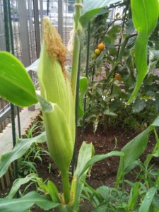 同じ年には、トウモロコシも3本育てています。売り物ほど立派なトウモロコシにはなりませんでしたが、ヤングコーン数本と、ちゃんと食べられるトウモロコシが三本収穫できました。