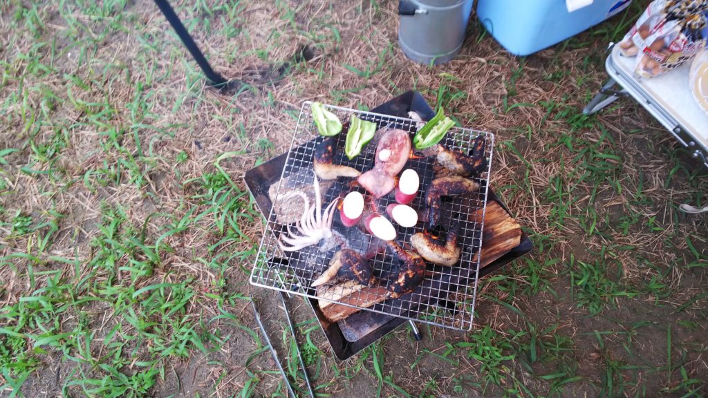 せっかく海の近くに来たので、海鮮バーベキューです。キャンプ場の近くの水産卸店で地元のイカと蛤を仕入れてきました。九十九里って蛤が有名なんですね。堪能させてもらいました。