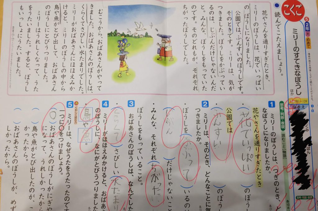 しかし、カンニングや支援の先生と一緒にやったのでは?という考えがなかったわけではありません。これまでにも、カンニングを指摘されたことや、工作など細かな指示理解が追い付かないところは、補助の先生がサポートしてくれていたことを知っていたので、少し半信半疑の部分がありました。ただ、しっかりと教えた通り、問題と同じ文章を探して、線を引いていること、先生も100点だけではなく、very goodの記載があることから、自分でやり切った正真正銘の100点であることを多少なりとも期待してしまっていました。